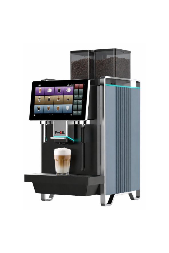 De FE82 combineert robuuste prestaties met een verfijnde koffiebeleving. Met twee bonenhoppers en een aparte heet wateruitloop levert deze machine moeiteloos koffie én thee van constante kwaliteit. De bediening is eenvoudig en intuïtief, ideaal voor drukke zelfservicelocaties waar snelheid en betrouwbaarheid belangrijk zijn. Dankzij de interne melkpomp kun je zowel warme als koude melk bereiden, twee verschillende melksoorten gebruiken en genieten van een microschuim cappuccino met perfecte textuur. Optioneel is de FE82 uit te breiden met een siropenunit voor 4 verschillende siropen, waarmee eenvoudig extra smaakvariaties kunnen worden aangeboden. Dankzij het moderne design en de stille werking past de FE82 perfect in elke zakelijke omgeving, van kantine tot wachtruimte. Een stijlvolle keuze voor wie dagelijks wil genieten van versgemalen koffie zonder gedoe.